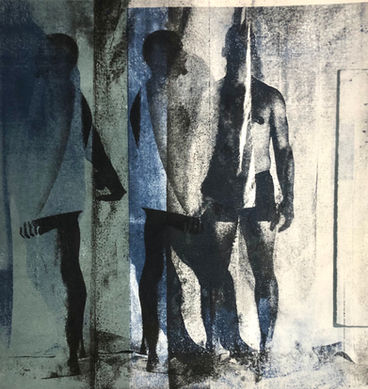 The serendipity of printmaking–its quick, intuitive activity–produced unexpected interactions: overlapping images, collage, and layered shadows. These inspired ambiguous starting places for new works.