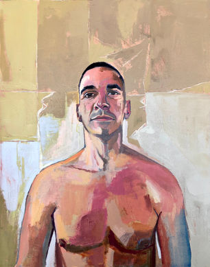 This process also led the paintings into fresh investigations and abstraction. Importing the printmaker’s brayer, tape, and stencil, I added veneers to the depth and volume that are a signature of painting. Referencing recurring motifs, the figure took on more conceptual directions.